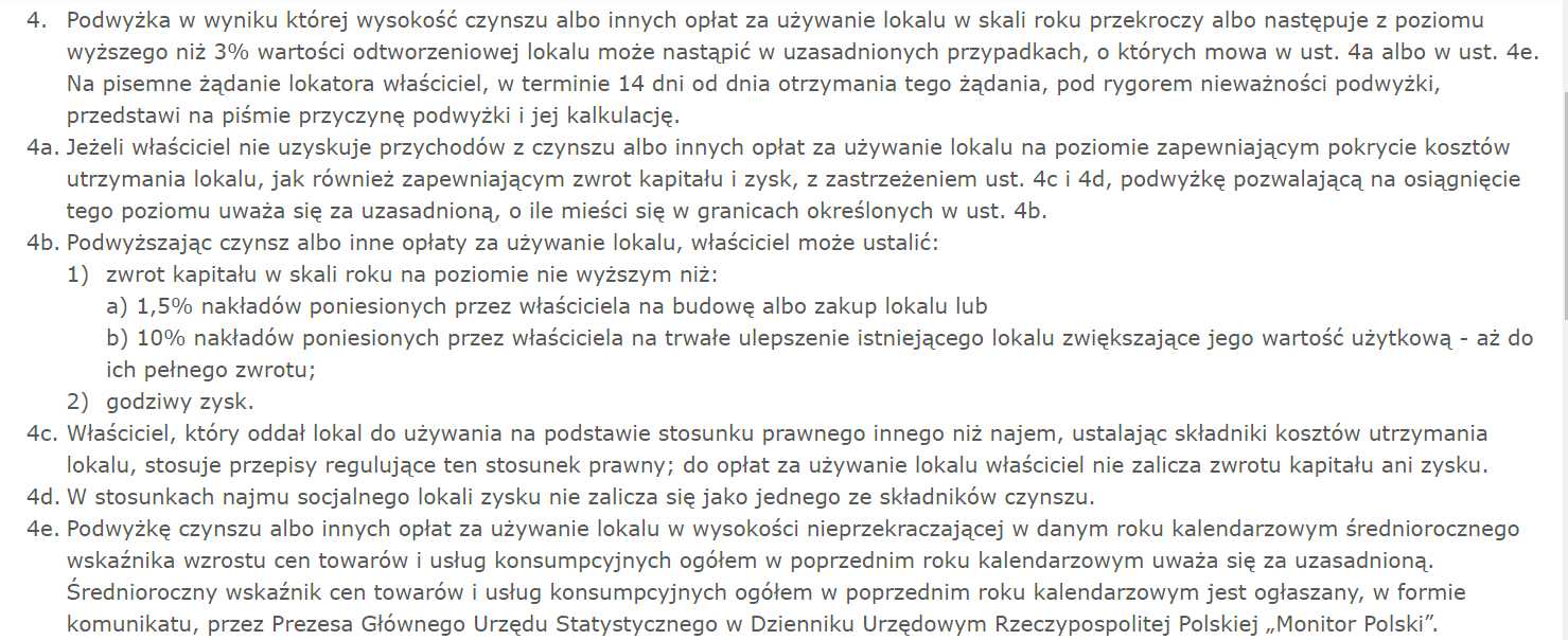 Art. 8a Ustawy o ochronie praw lokatorów mówi o trybie podwyższania czynszów. Fragment, którego TBS chce się pozbyć rękoma ustawodawców zamieszczamy w poniższym skrinie:
